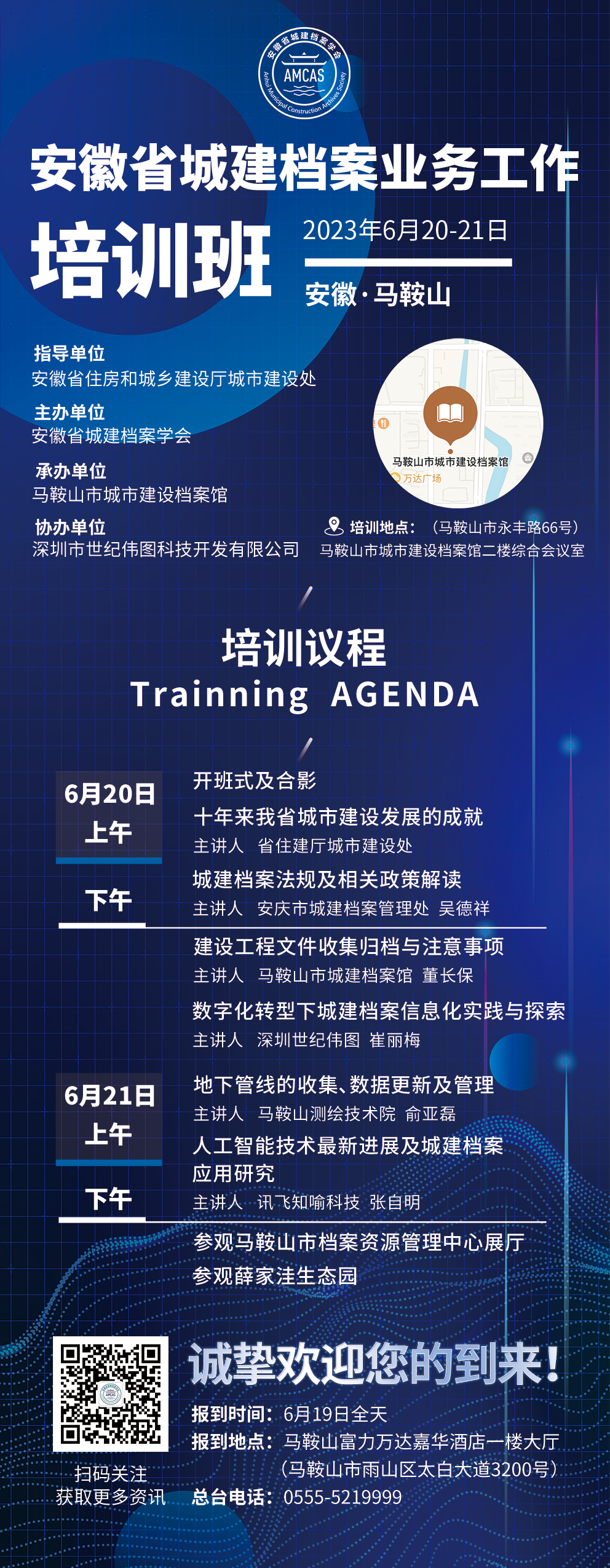 此次培训交流会经安徽省住建厅批准,由安徽省城建档案学会主办,马鞍山市城市建设档案馆承办,深圳市世纪伟图科技开发有限公司协办。